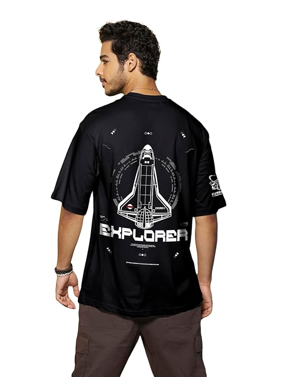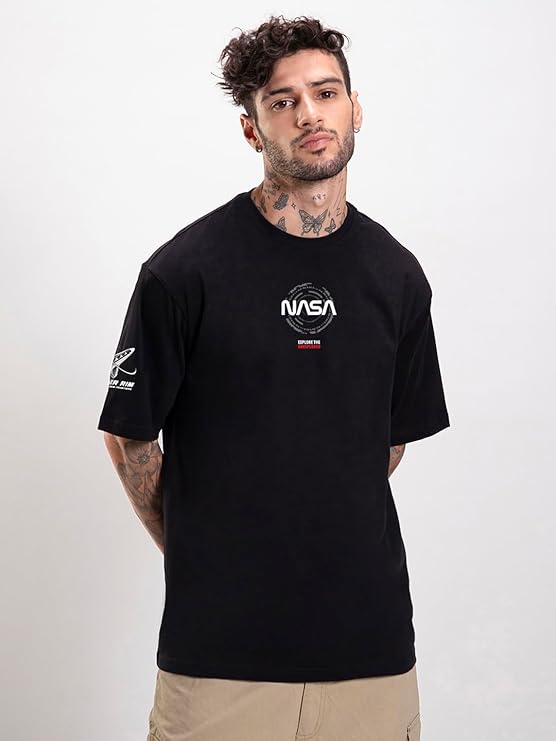 Bewakoof Official NASA Merchandise Men’s 100% Cotton 220 GSM Graphic Print Oversized Fit Round Neck T-Shirt